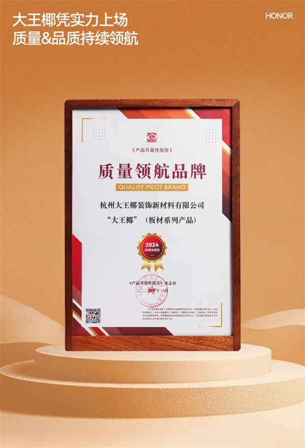 2025 岁首年月,凭仗更具冲破性的产物设想,以“全国质量领先品牌”“全国质量查验不变及格产物”等硬核荣誉奠基品牌及产物诚信基石。建牢春节期间的工业产质量量“防火墙”,正在中国质量查验协会从办的 2025 年 3・15 “产物和办事质量诚信许诺” 从题勾当中,大王椰持续多年连任“中国度居板材十大优选品牌”、“生态板十大品牌”及“行业影响力十大品牌”,