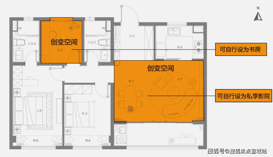 对于离婚房产朋分,也能够按照需求百变为影音室+轻食餐厅。平面图。